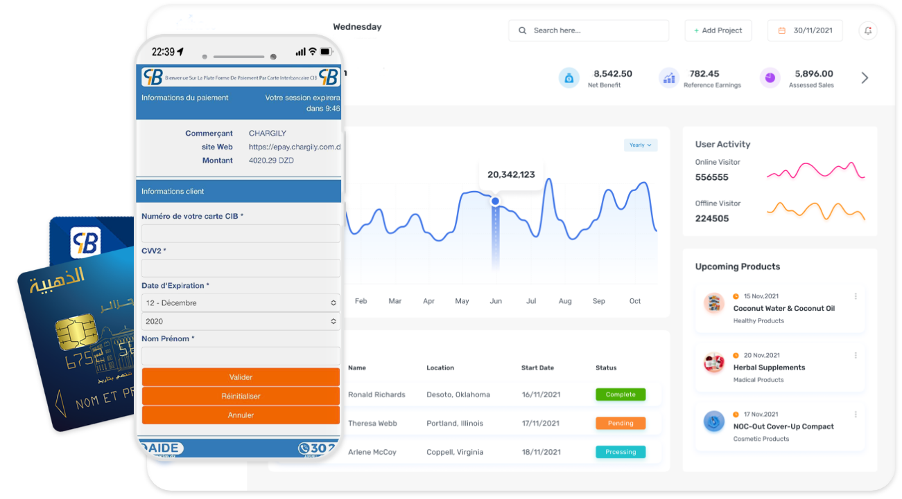 As Web Merchant, your clients may have a preference to pay online with their CIB-SATIM card, EDAHABIA or by an international credit card. To easily serve all these consumers, Chargily Pay™ is the perfect starter solution for you to receive payments online. We offer a secure solution, free API and plugins to integrate easily.